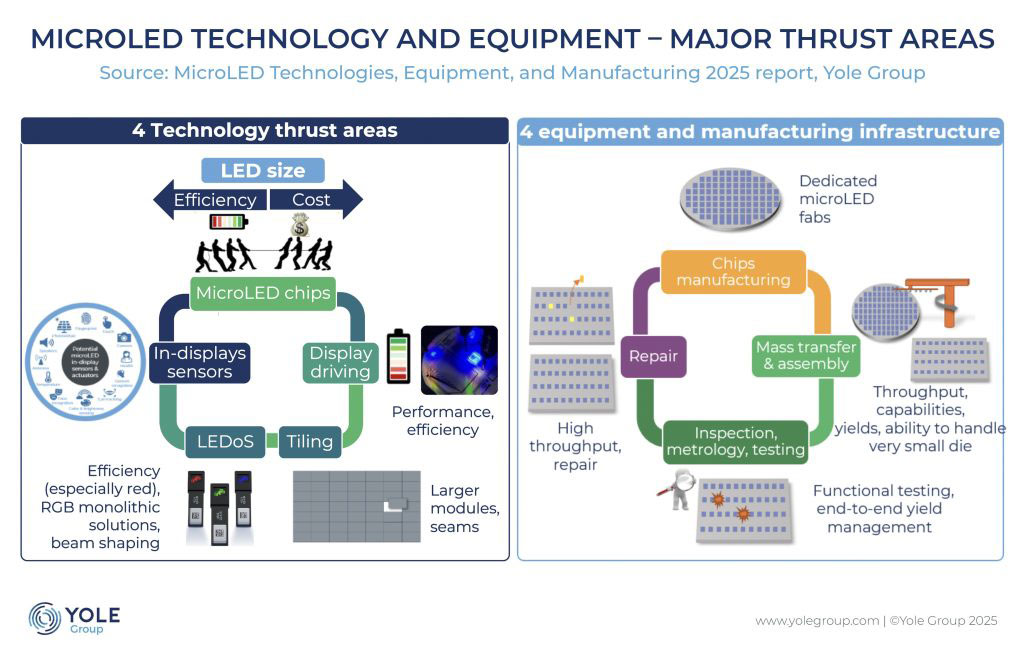 At a time when production lines begin to ramp and the technology enters a pivotal make-or-break phase, market analyst firm Yole Group has released two strategic reports: MicroLED Markets, Applications, and Competitive Landscape 2025 and MicroLED Technologies, Equipment, and Manufacturing 2025.