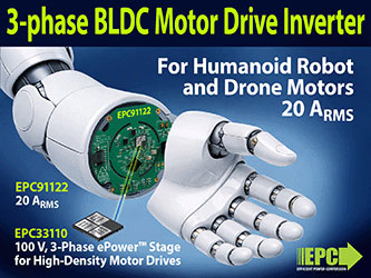 EPC launches 3-phase BLDC motor drive inverter for robot joints and UAVs