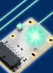 For small applications at the lower end of the performance range and available in red, blue, green and white, the OSTAR Compact measures just 3.9mm x 3.6mm and is a cost-effective component, particularly for pico projectors for small mobile devices. Manufacturers wanting very compact units can use a double-chip version that contains a red chip and a blue chip in one LED, saving space compared with the usual configuration of three individual LEDs (red, blue, green). As an SMT component, it can be easily integrated into standard manufacturing processes. Integrated ESD protection diodes guard against electrostatic effects.