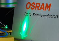 “These compact, direct green laser diodes will reach efficiencies and output power to revolutionize the current markets for green lasers,” believes Dr Volker Haerle, vice president of R&D at OSRAM Opto Semiconductors.