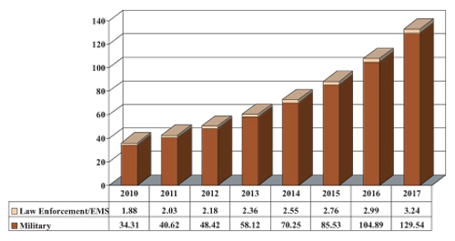 The use of LEDs in NVIS-compatible lighting will continue to be dominated by the Military market sector, which includes Army, Air Force, Navy, Marines, Coast Guard, National Guard (and State-level Guard/Defense) and the equivalent from countries worldwide.