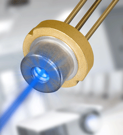 “By starting serial production of a blue high-power laser diode in the 1W power range we further strengthen our leading role in the field of blue lasers,” reckons Dr Thomas Hoefer, head of R&D for infrared products and lasers at Osram Opto. “When developing these diodes we were able to draw on many years of experience with other types of lasers,” he adds. “We could also implement the results of publicly funded research projects,” notes Hoefer. The basic technology for the InGaN laser diodes was developed in the course of the MOLAS Project, which was supported by the German Federal Ministry of Education and Research.