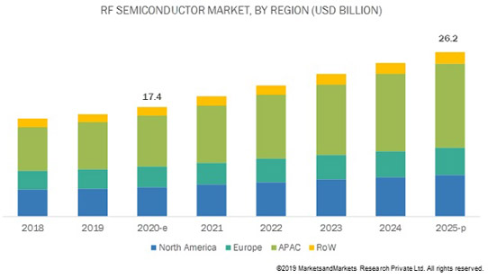 RF semiconductor market growing at 8.5% CAGR from $17.4bn in 2020 to $26.2bn by 2025
