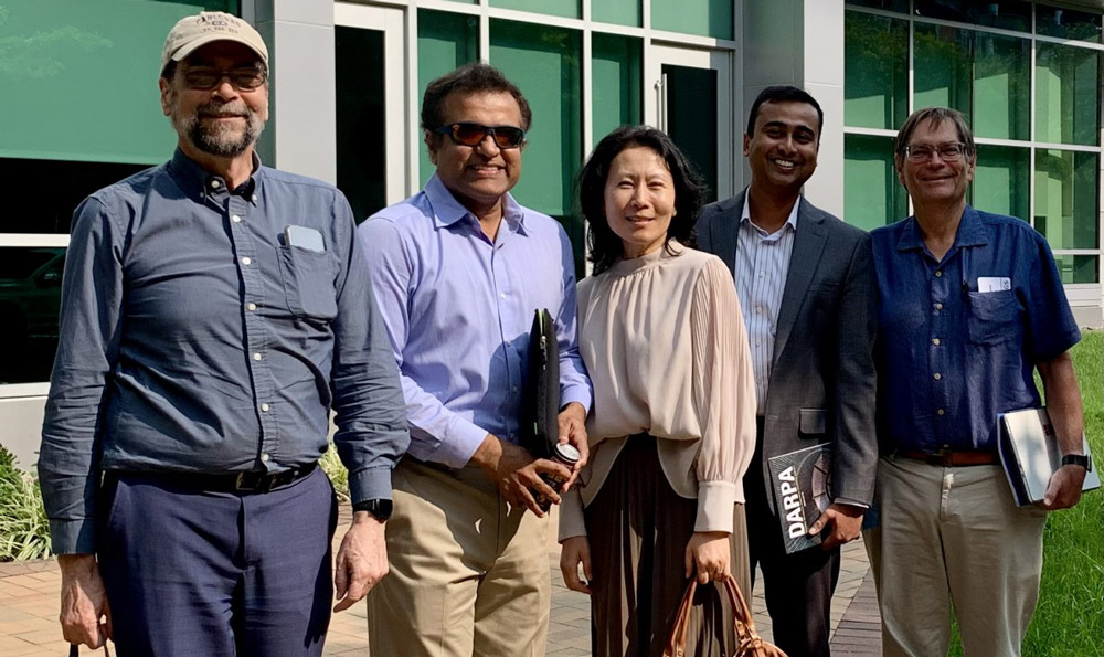 Picture: Cornell researchers in the Department of Materials Science and Engineering involved in the project, including (from left) Leo Schowalter (CTO of Lit Thinking and a visiting professor); Debdeep Jena (the David E. Burr Professor in electrical and computer engineering); Huili Grace Xing (the William L. Quackenbush Professor in electrical and computer engineering); Hari Nair (assistant research professor); and Michael Thompson (the Dwight C. Baum Professor).