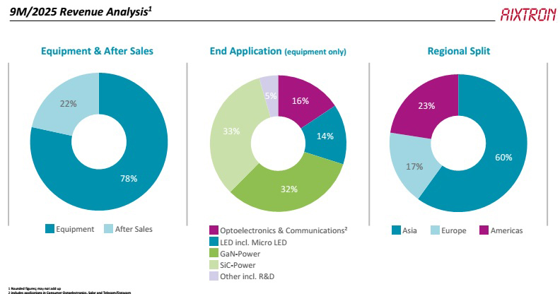 The continued AI data-center build out also remains the driver for tool demand in the Optoelectronics segment. The pick up in demand for datacom lasers seen in Q2 has been confirmed in Q3 (and is expected to continue into 2026). Aixtron’s G10-AsP metal-organic chemical vapor deposition (MOCVD) platform continued to gain market share, successfully replacing legacy systems at leading customer accounts.